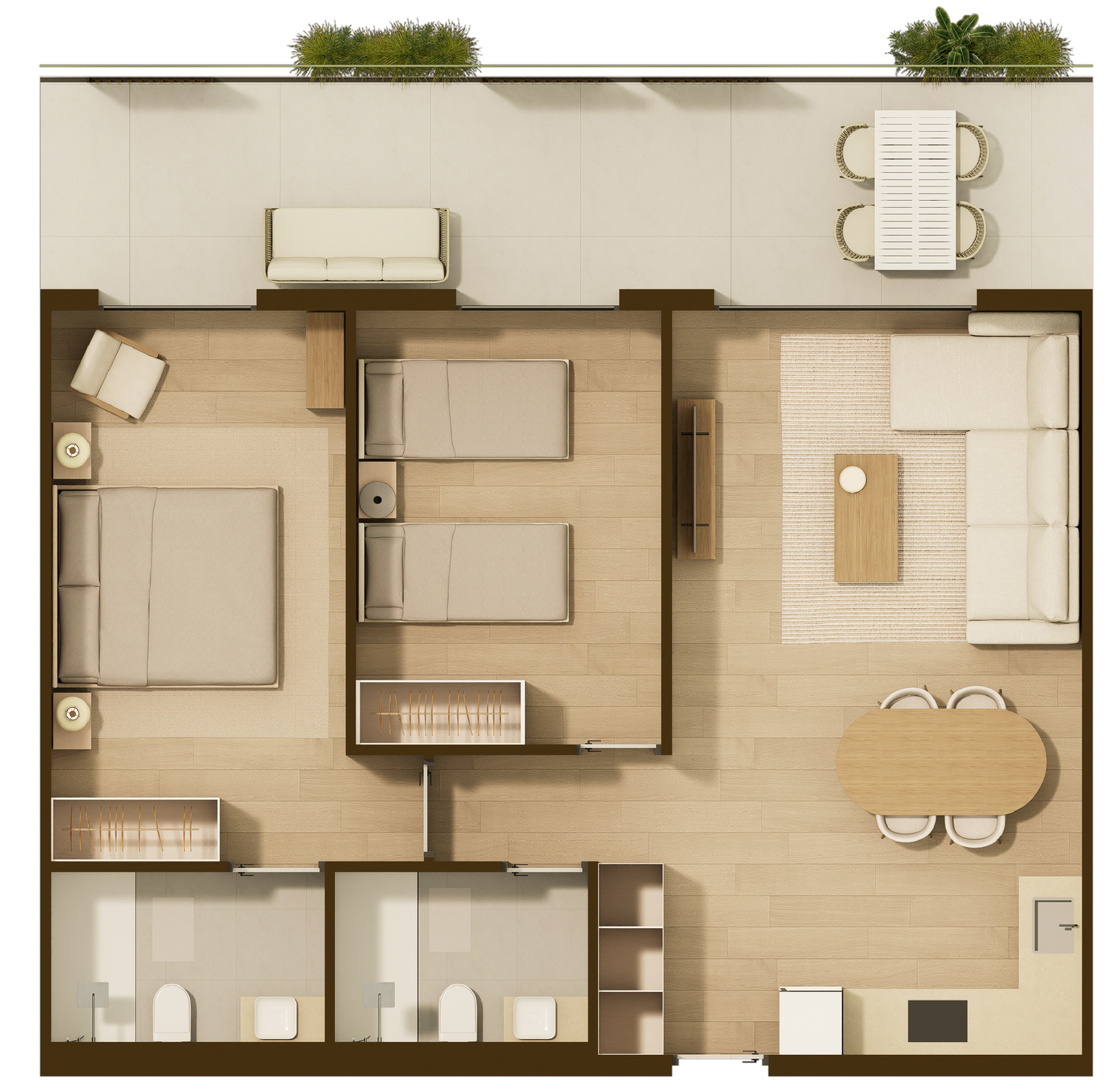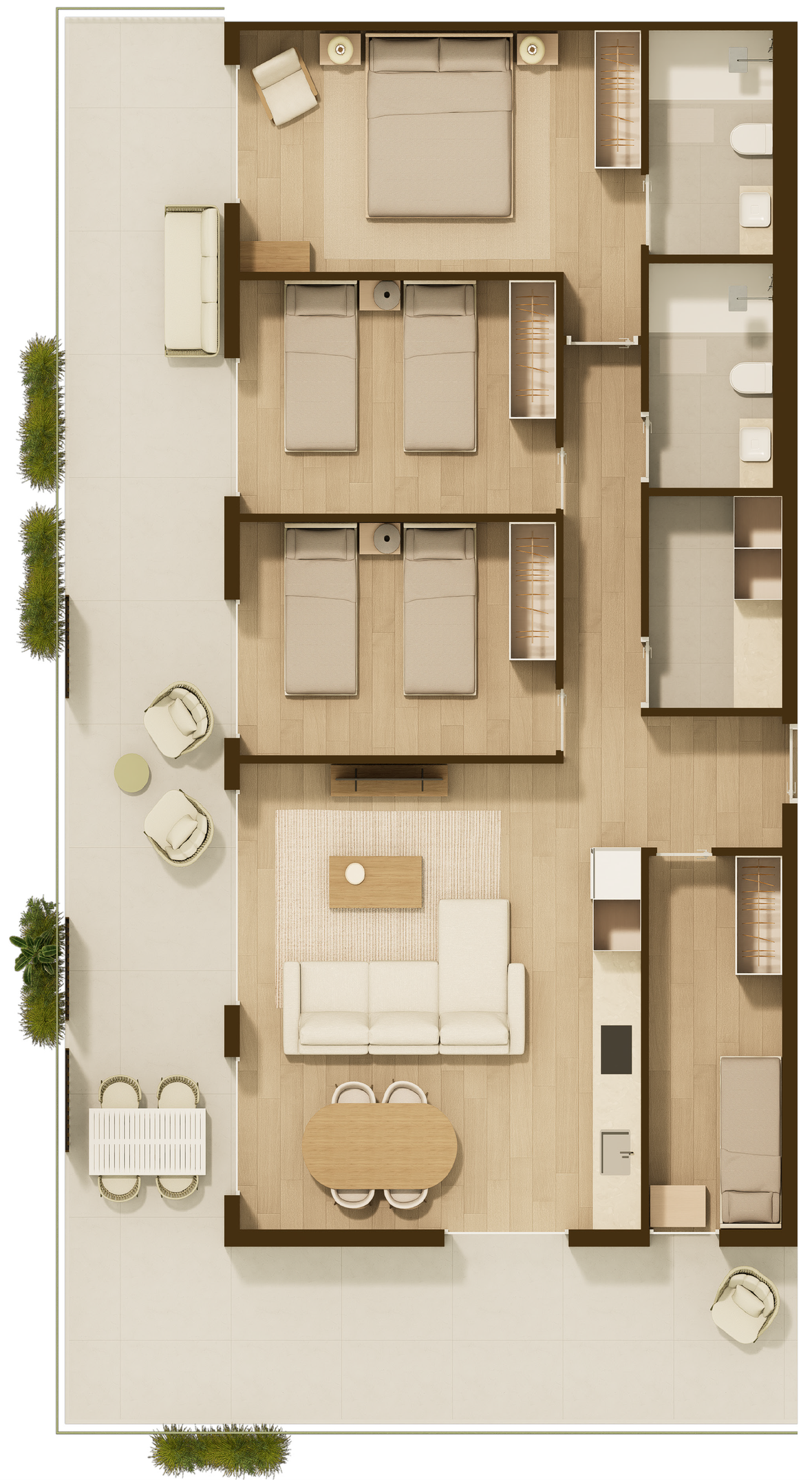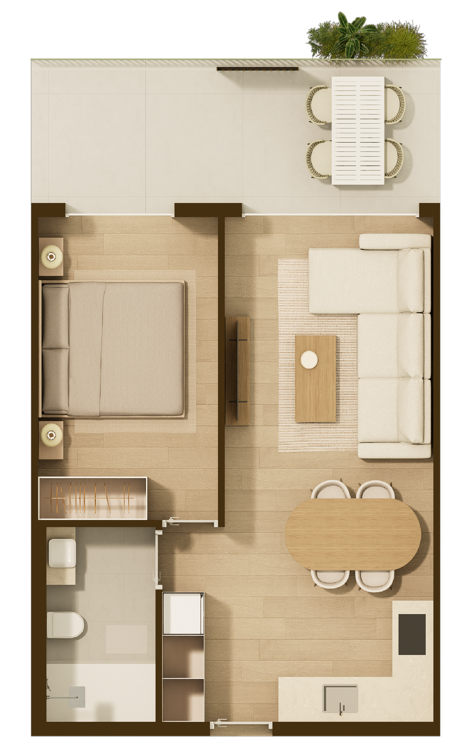 Unidades exclusivas con grandes terrazas y vistas abiertas.