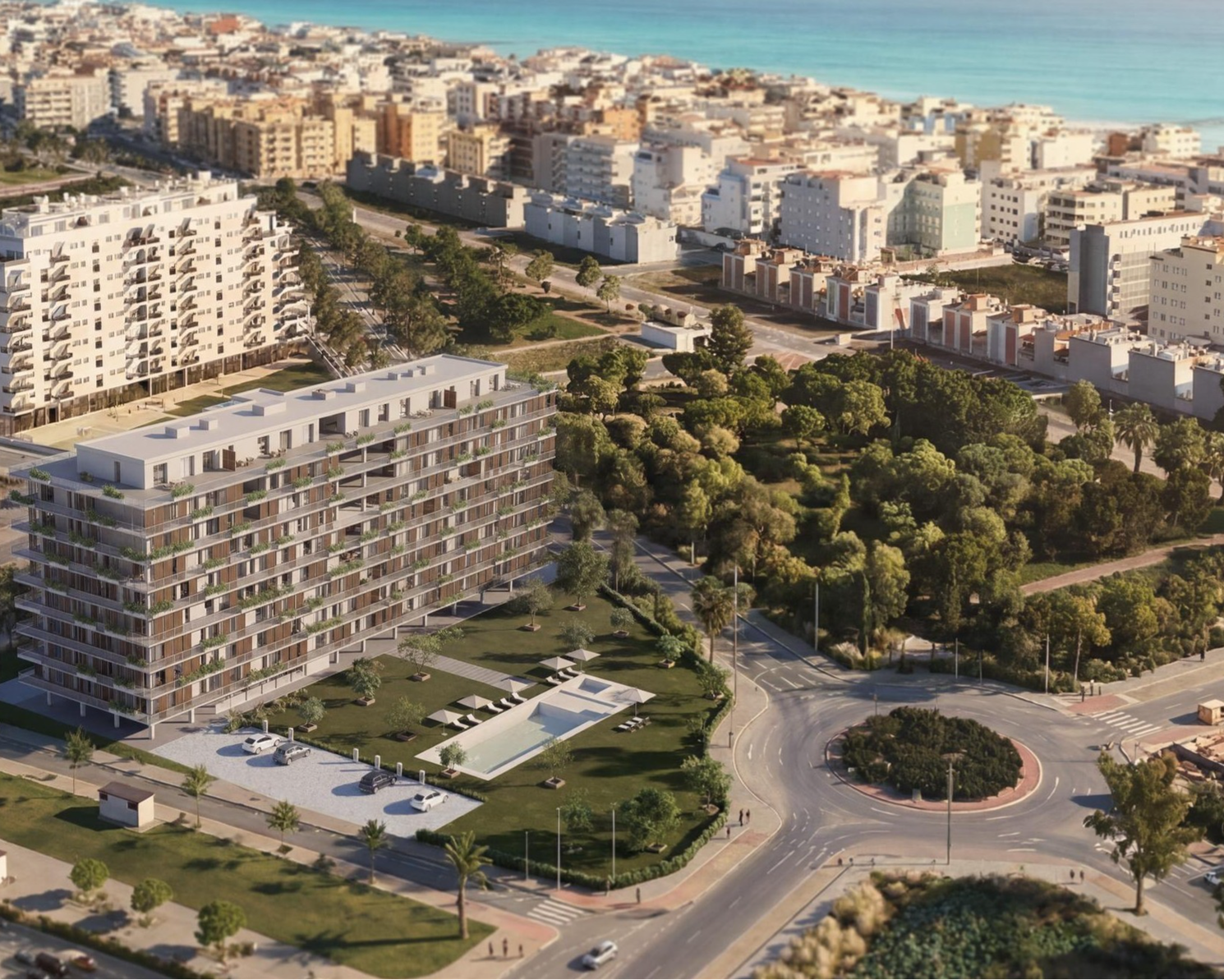 Edificio de 96 viviendas completamente equipadas y amuebladas desde 136.000€. De 1 a 4 dormitorios con amplias terrazas y zonas comunes muy cerca del mar.